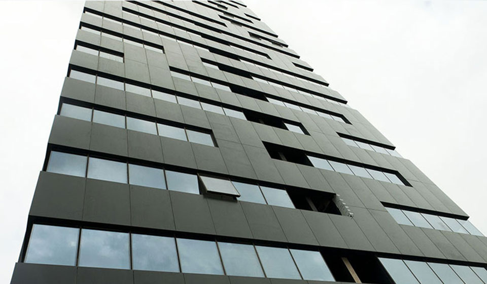 Revestimento em compósito de alumínio: 7.800 m2 Janelas de Correr Elevatórias: 273 m2